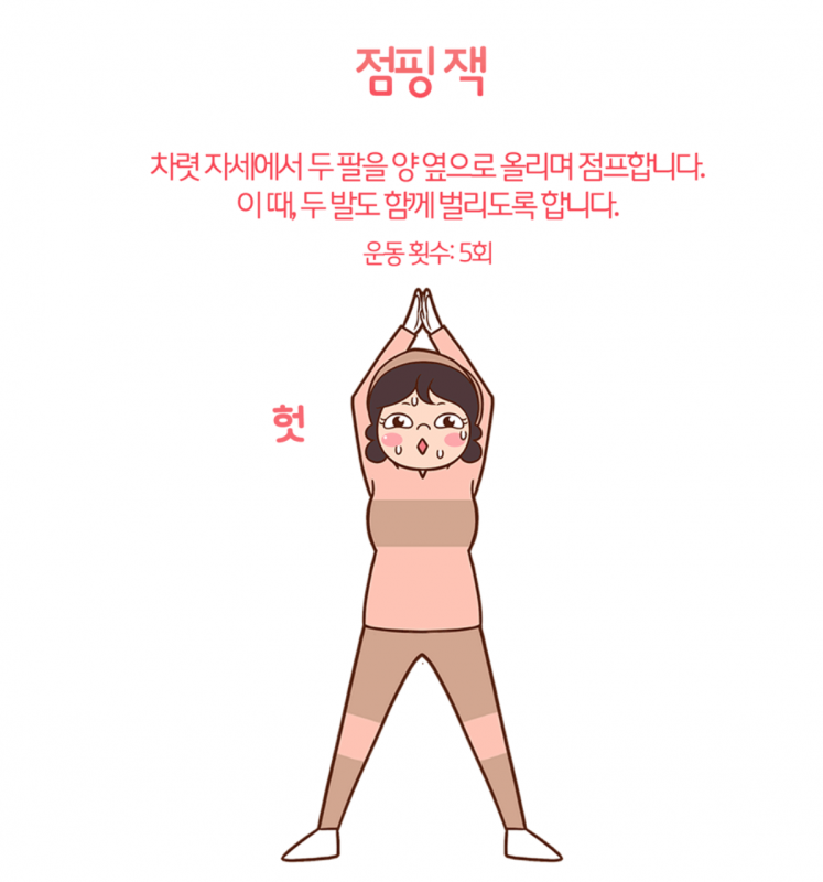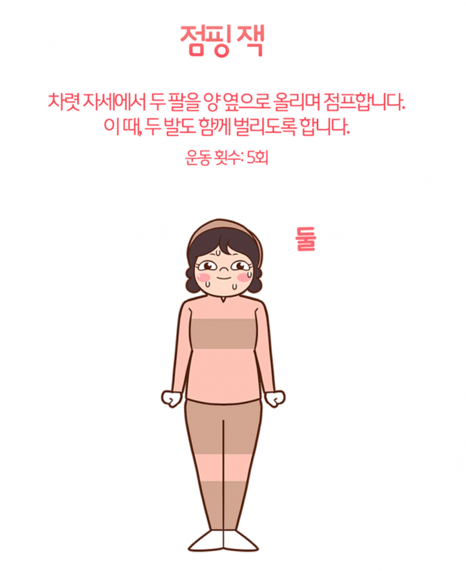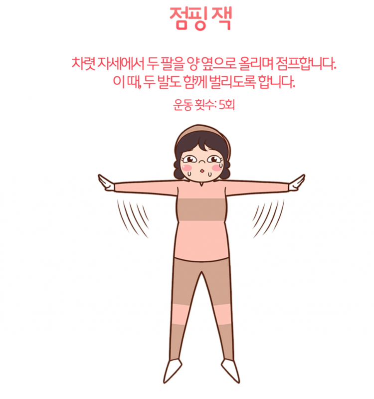 ▼做開合跳動作,跳起時雙腳開至肩膀寬,雙手在空中上下揮動;