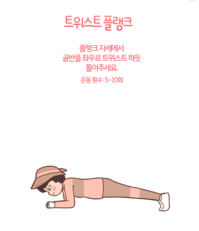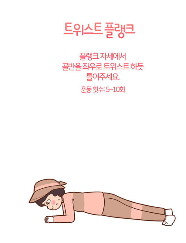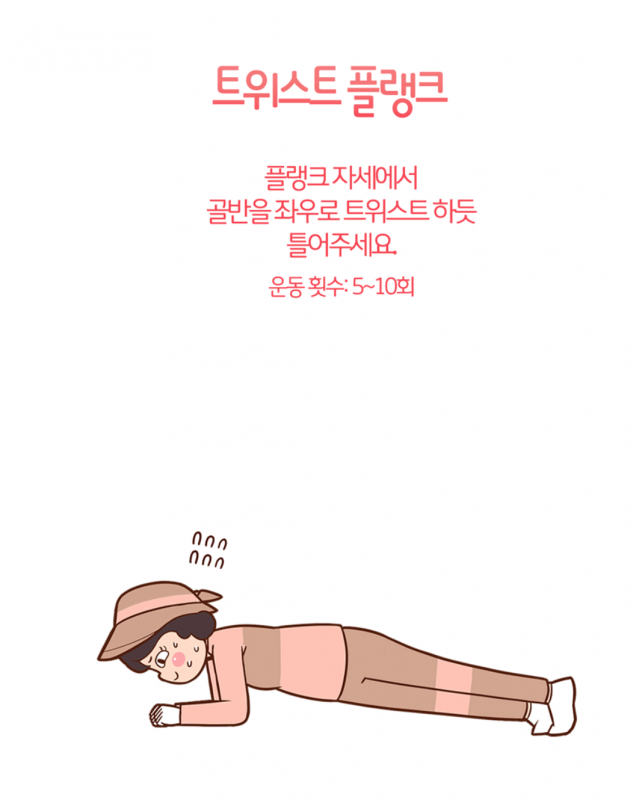 ▼7.擺出一個棒式的動作,臀部與身體在同一水平上;