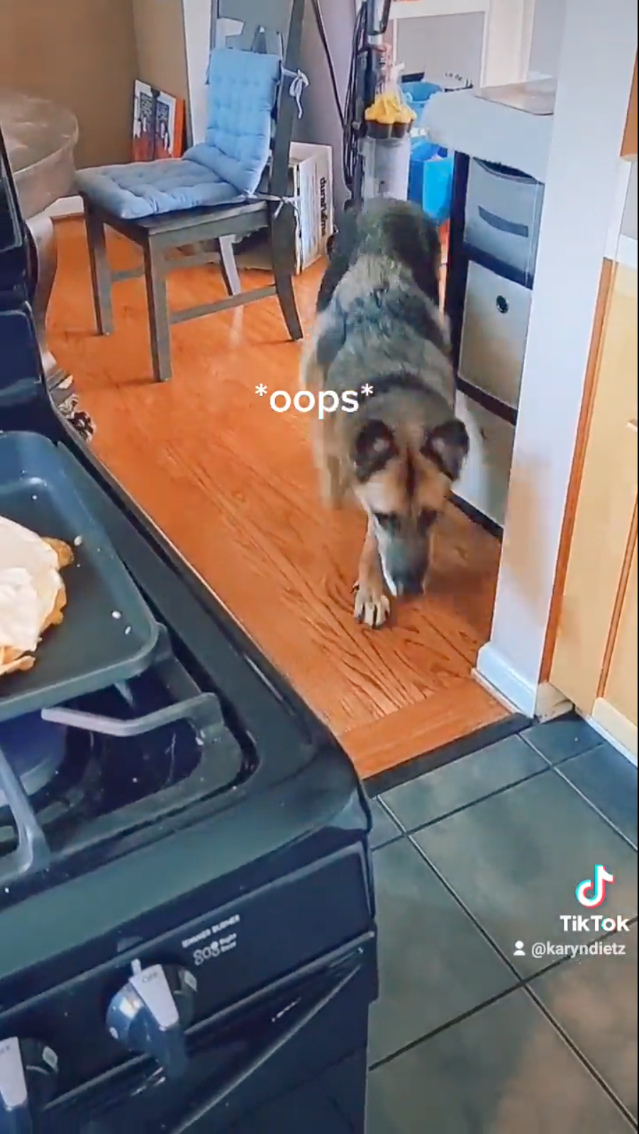 根本吃貨密碼!主人煮飯「哎喲」裝掉落 愛吃狗秒趕來:讓偶檢查地板~