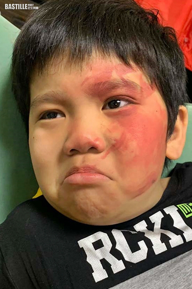 另外,妹妹又在哥哥的手腳上,用眼影畫了不同顏色,看起來一片瘀一片青,像「家暴現場」一樣,令媽媽哭笑不得。幸好媽媽之後已用卸妝油替子女二人清潔亁淨。