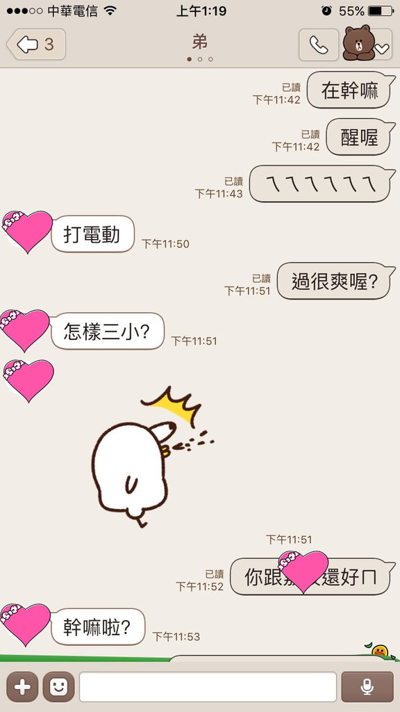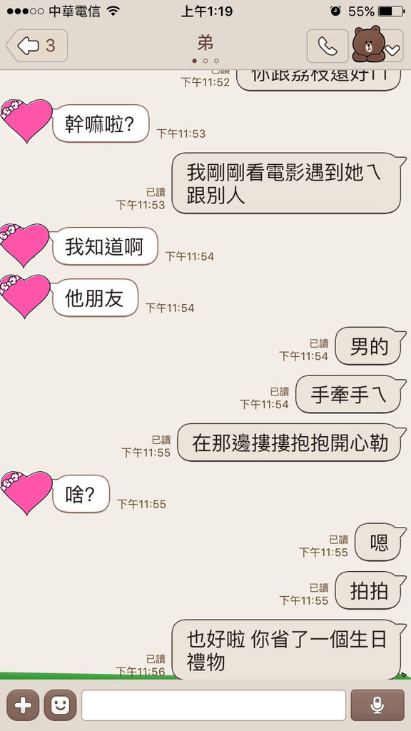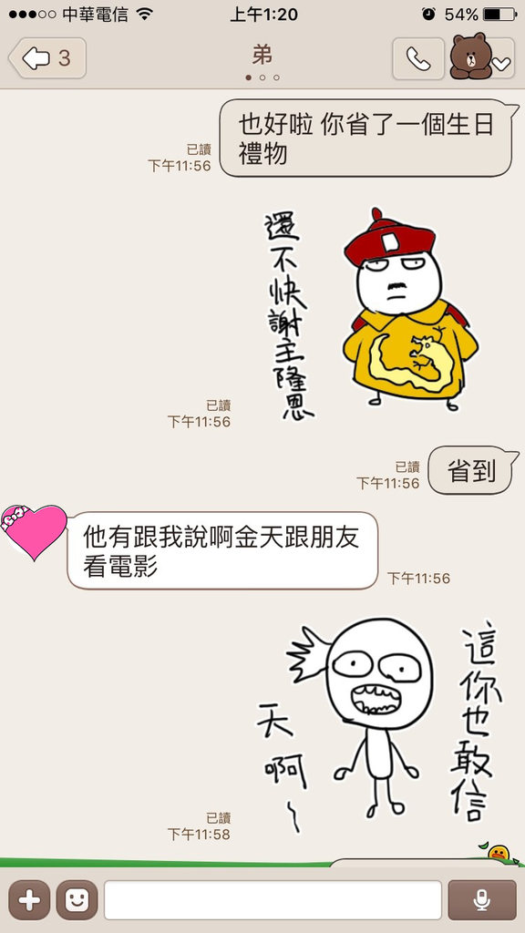 2021年03月21日最近一名女網友下班和男友去看電影時,遇到弟弟的女友和別的男生在一起,互動非常親密。她傳LINE告訴正在家裡打電動的弟弟,還用了一串超欠K的貼圖,將一件令人崩潰的大事變得超搞笑。網友們看到後忍俊不禁:「他應該被妳的圖搞崩潰了。」