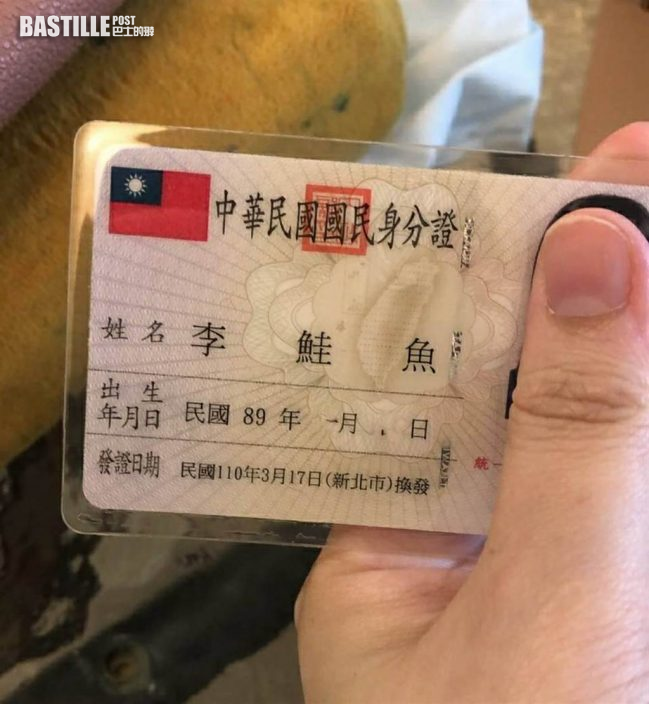 台灣基隆市一名警員改名為「宜蘭之子超粗大深海鮭魚王」。網上圖片