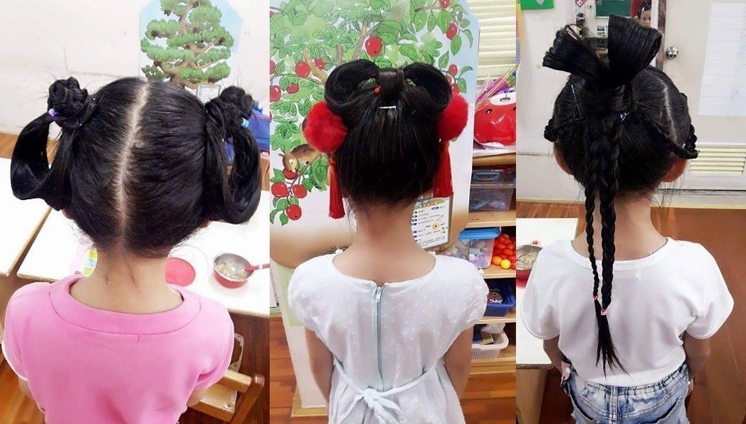 還有媽媽特地把老師的編髮作品收集成一個作品集相簿,只見女兒的頭髮每天都有不同的變化,有時候是單股麻花辮,有時候是兩顆丸子頭,老師心血來潮還會再加上花花或是把緞帶編進辮子裡增加色彩,只能說用心程度和技術都是滿分一百分!