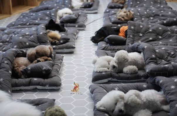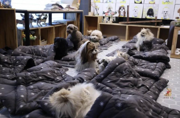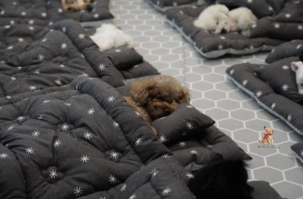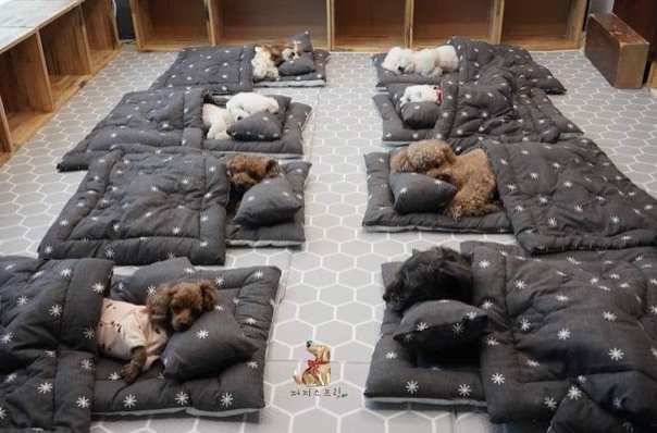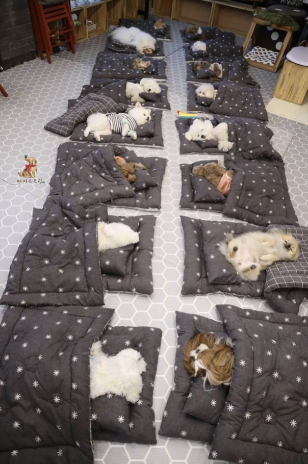 ▼幼兒園會為每一隻狗狗準備小被子,狗狗們排排睡,那場景超療癒。