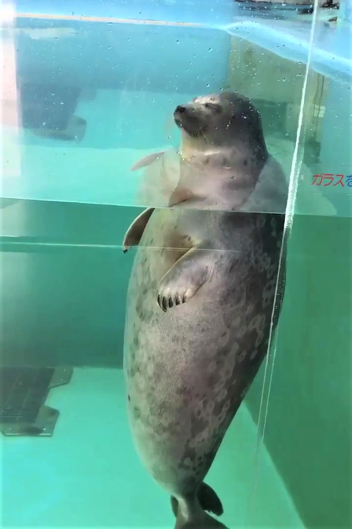 而海豹大概看推主一直看著自己,居然還自己緩緩原地自轉了一圈...「就讓你欣賞一下可愛的我吧~」