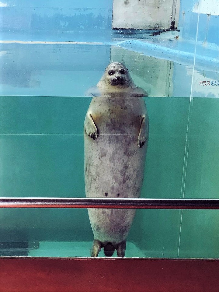 身材圓滾滾、形象呆萌的海豹不應該是可愛動物區的嗎?怎麼會有種來到海洋世界版《鬼修女》片場的感覺啊~~(驚)日本推主@tkak0123先前前往小樽水族館參觀,結果來到海豹區時卻差點被嚇得魂不附體——