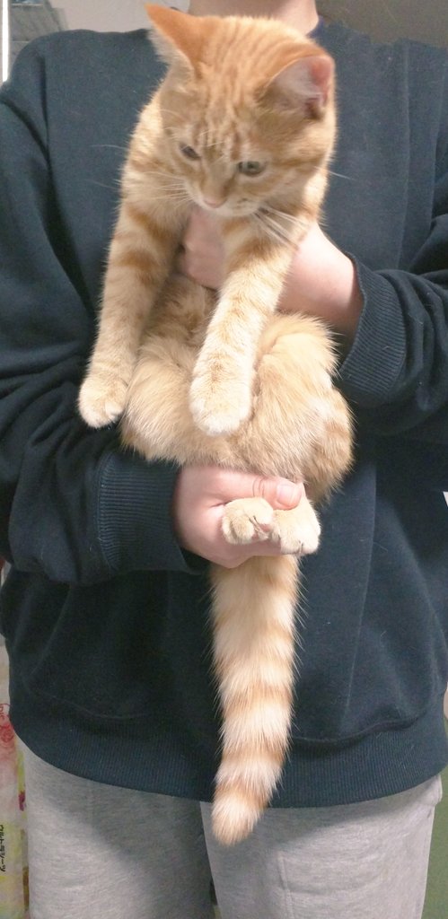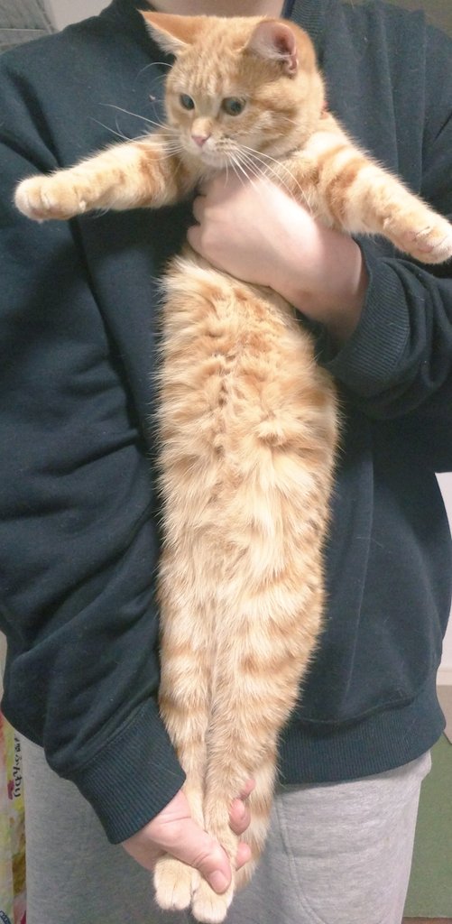 ▼推主表示,家裡的柴柴太頑皮,後腳不小心脫臼,治療後要經常幫牠做復健,輕輕拉伸。有一天她抱起家中的橘貓做伸展運動,結果貓咪竟然可以無限延伸!