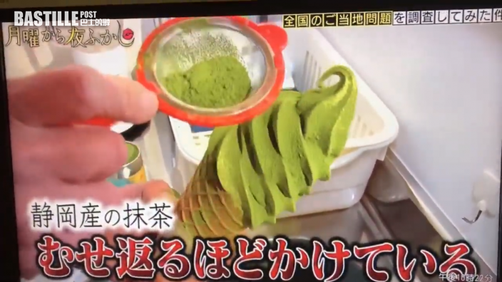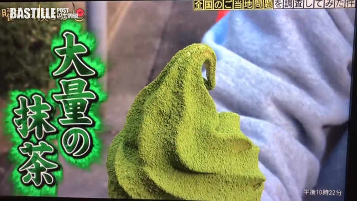 抹茶口味的甜點和冷飲是不少人的心頭好。日本一間抹茶專賣店就推出了一款吸引「抹茶控」的勁量抹茶雪糕。店家更打出「殺人抹茶」的招牌,指這是一款會「嗆人」的抹茶雪糕,上面撒上巨量的抹茶,有節目在街頭讓路人們嘗試,無一不口狂噴「綠粉末」,被嗆到不行。