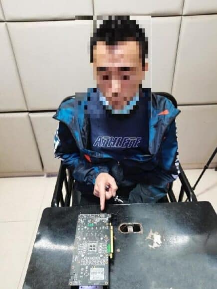 民警透過翻查閉路電視和入住記錄,鎖定了姓卓的疑犯並將之拘捕,卓某承認犯案。他表示自己沒有固定收入,在媒體聽到電腦顯示卡水漲船高的報導後,於是想到偷取顯示卡轉賣的念頭。礙於網吧監控嚴密,於是他想到入住電競酒店,然後以金屬耳挖將上鎖的主機機殼打開,再將價值 300 人民幣的 GeForce GXT 650 Ti Boost 顯示卡與電競酒店的 GeForce RTX 2070 對調。