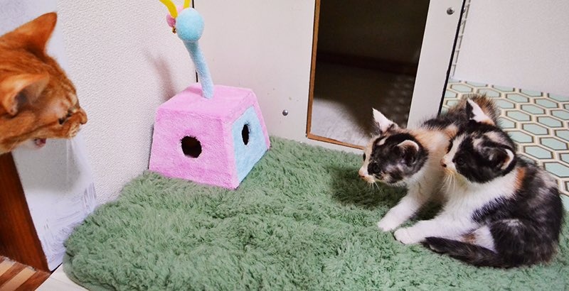 ▼這對花貓姐妹是同一天出生的,由同一隻橘貓前輩一手帶大。牠們吃同樣的東西,生活環境也一模一樣,但在成長的道路上卻南轅北轍。