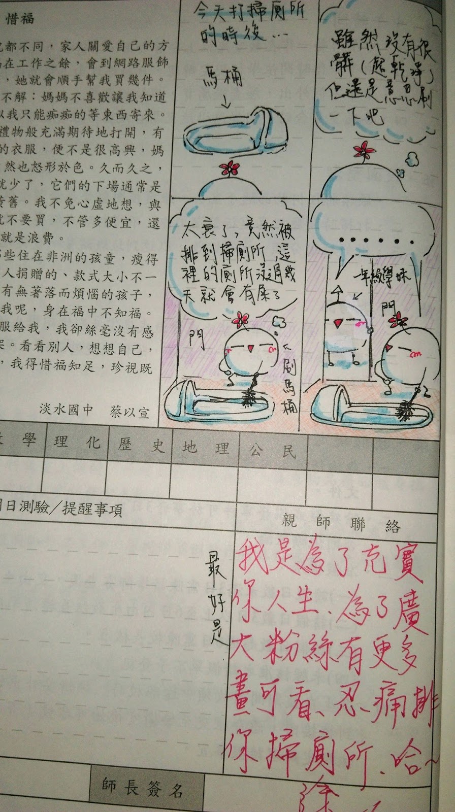 2021年03月08日史上最讓人想一直讀下去的聯絡簿!就讀中華大學的女網友覺得國三弟弟寫的生活札記很好笑,於是決定把聯絡簿的內容上傳到網路給大家看,沒想到還真的引起大家的注意!什麼「因為天氣很冷,那邊就會變小,我是說膽子」、「今天我媽把仙草跟奶茶混在一起,喝起來就跟把奶茶和仙草混在一起的味道一樣」,每一句都超有梗,害大家都笑到並軌!
