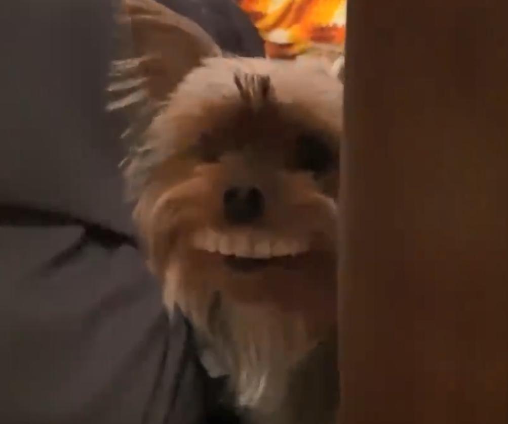 把拔早起發現「桌上假牙消失」!一轉頭見愛犬「露齒燦笑」:嘿嘿嘿~