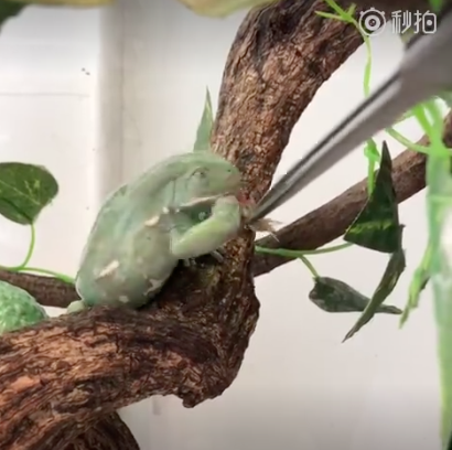 吃飯時間到了!飼主貼心「夾蟋蟀餵食」 厭世青蛙「大手一甩」:拎北美燕呷啦~