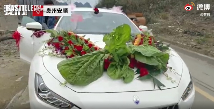 迎親途中花飾跌爛 新郎急採「巨型白菜」裝花車竟無違和感