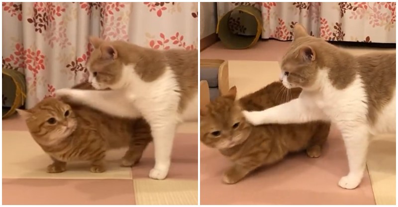 腿短沒貓權?喵姊走路「伸手就巴頭」 短腿橘想反抗還「被壓著打」:不公平QQ