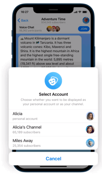 Telegram 的語音聊天功能與 Clubhouse 一樣設有「舉手」功能,並添加了錄製內容的功能,只要是頻道持有者便可以錄製內容。同時,Telegram 亦可以讓管理員生成兩個不同的鏈接,分別給聆聽者及輪候發言者使用。而且可以跨平台使用,不論在 iOS,Android 以及 Windows 均可使用,似乎對 Android 用戶以及想獲得更多用戶支持的用家相當友善。