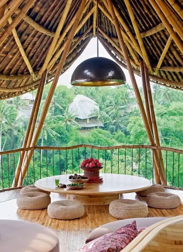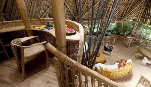 她不僅只是用竹子作為建築材料,還將整個傢具、地板、裝飾品、餐具等全部採用了自然清新的竹子來製造。