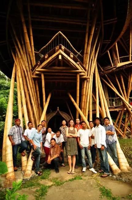她在這裡設計了一個個竹屋別墅,沒多久,之後引來了全世界40多個國家的人跑來圍觀。