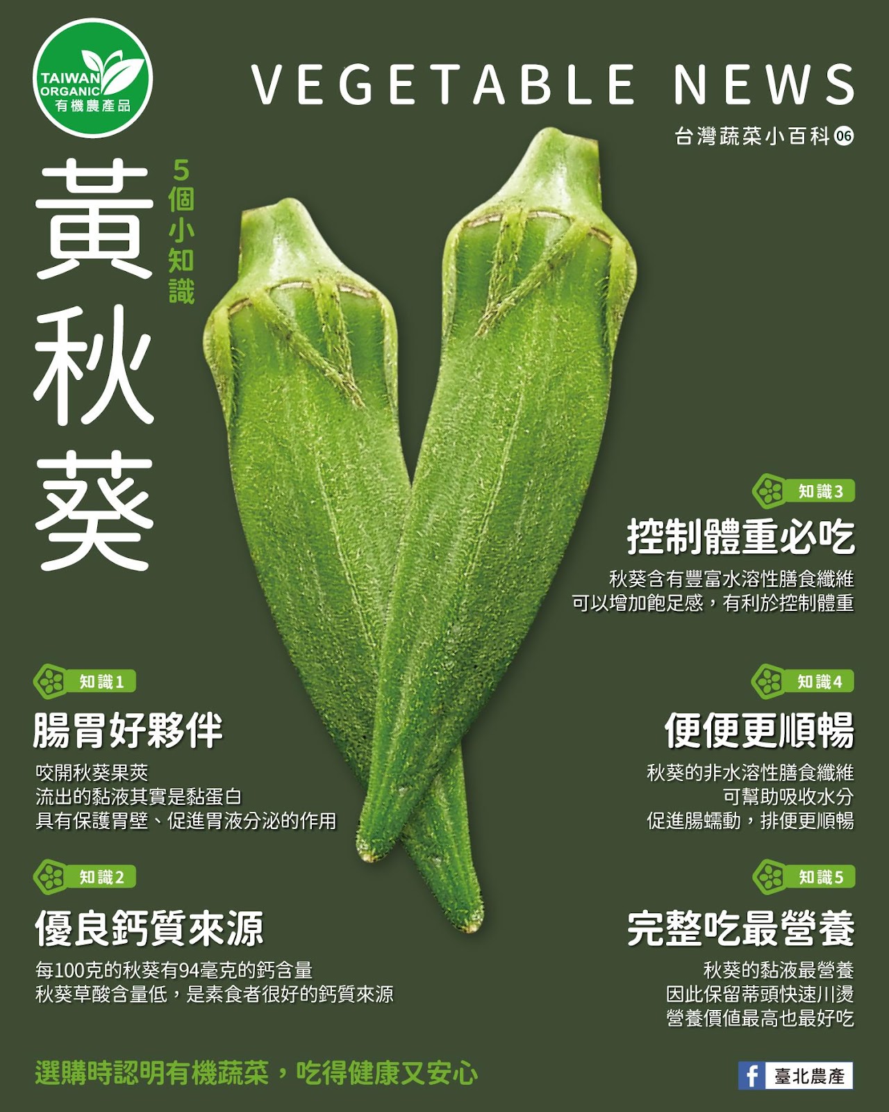 為了讓大家更清楚秋葵的好處,台北農產也在臉書列點詳述關於「秋葵的5個小知識」,希望大家都能透過健康飲食,讓身體更健康!