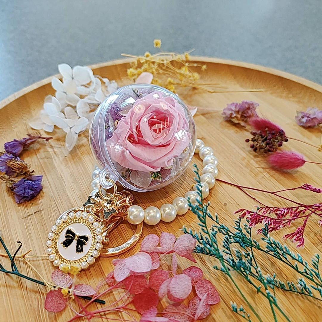 另外園區裡還可以DIY手作的永生花鑰匙圈,只要大約半小時就可以完成獨一無二的花花鑰匙圈!
