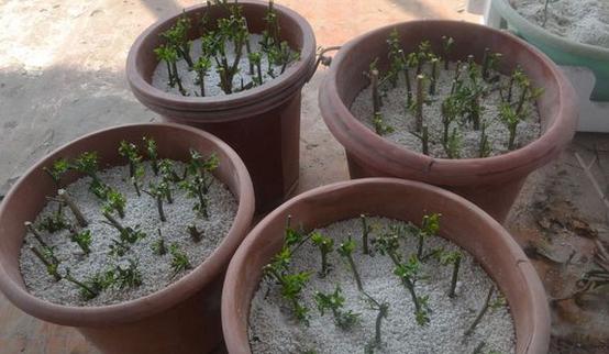 b、插好後澆透水,之後15天內需要注意遮蔭和保持土壤濕潤。經過15天左右插條就可能生根。