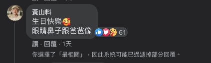 另外網紅黃山料留言「眼睛鼻子跟爸爸像」後,也引來溫昇豪「哈哈~不能偷生」的打趣回覆。而路過的網友看到兩人的逗趣留言,也在下方表示「好像隋棠」,害得溫昇豪趕緊出面「這回答怪怪的」,而網友也隨之笑噴說明:「就是讚美好看,臉蛋美麗啊!哈哈哈哈是小美女一枚!」