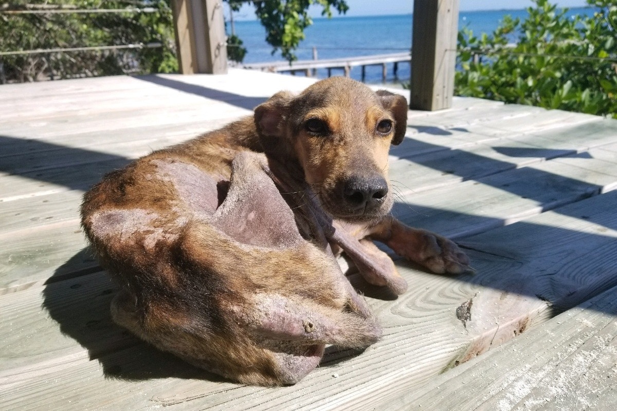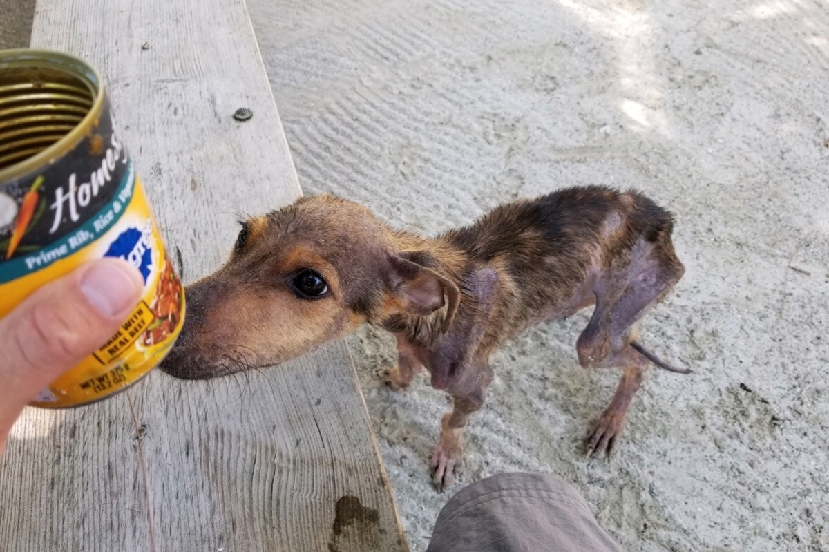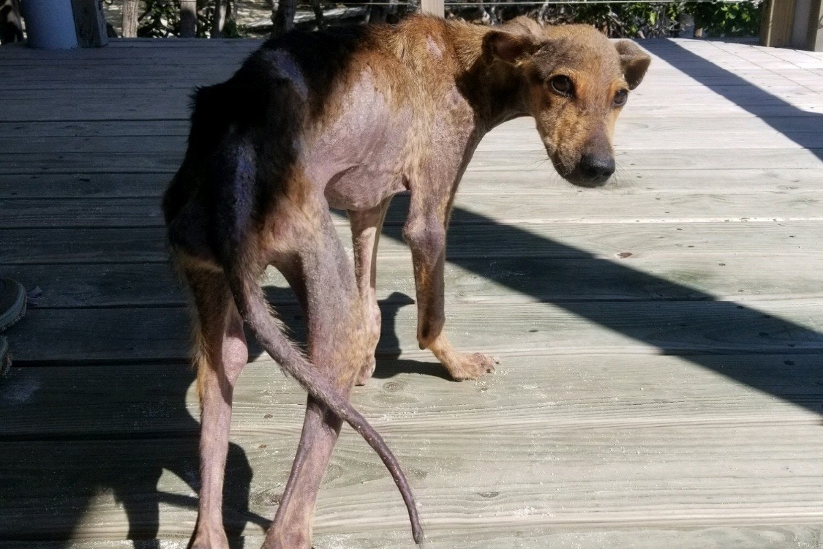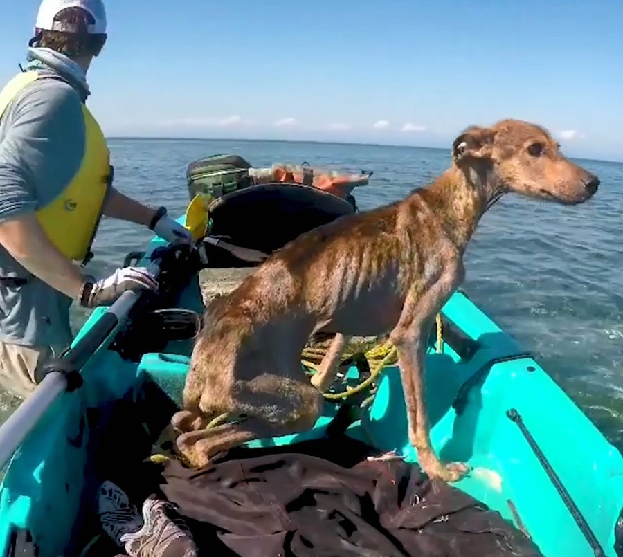 ▼Wesley將狗狗帶到附近大一些的島嶼上,給狗狗取名為Winston,並帶牠去看獸醫。獸醫表示這隻狗狗身體很虛弱,全身的毛幾乎都掉光了,皮膚也有問題。牠應該很長一段時間沒有好好吃東西了,瘦得不可思議。