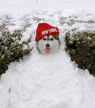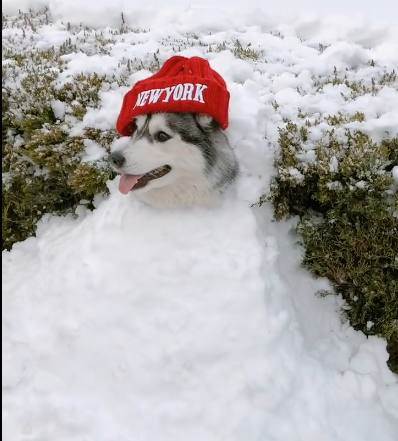 ▼前幾天下大雪,鏟屎官帶狗狗去雪地裡玩耍,一時興起想要堆雪人。鏟屎官讓狗狗坐好,然後將雪堆在牠的身上,讓牠露出腦袋,再戴上紅色的帽子,一個喜慶的哈士奇雪人就堆好了!