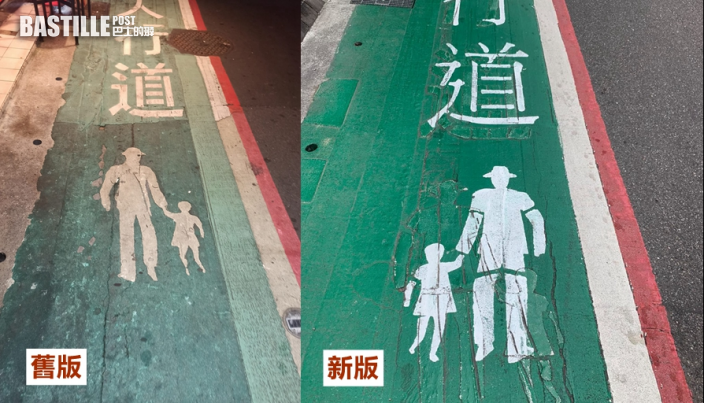 為交通安全,世界各地的馬路上都會以圖文標註指示,雖然各式各樣但都是希望使用者可以遵守行路規則。最近有台灣民眾在路上發現行人道上的標誌性圖標「爸爸牽孩子」有個暖心的小變化,於是拍照分享到網上,不料意外掀起網友的熱烈討論,有人大讚,亦有人藉此嘲諷當地的交通亂象。