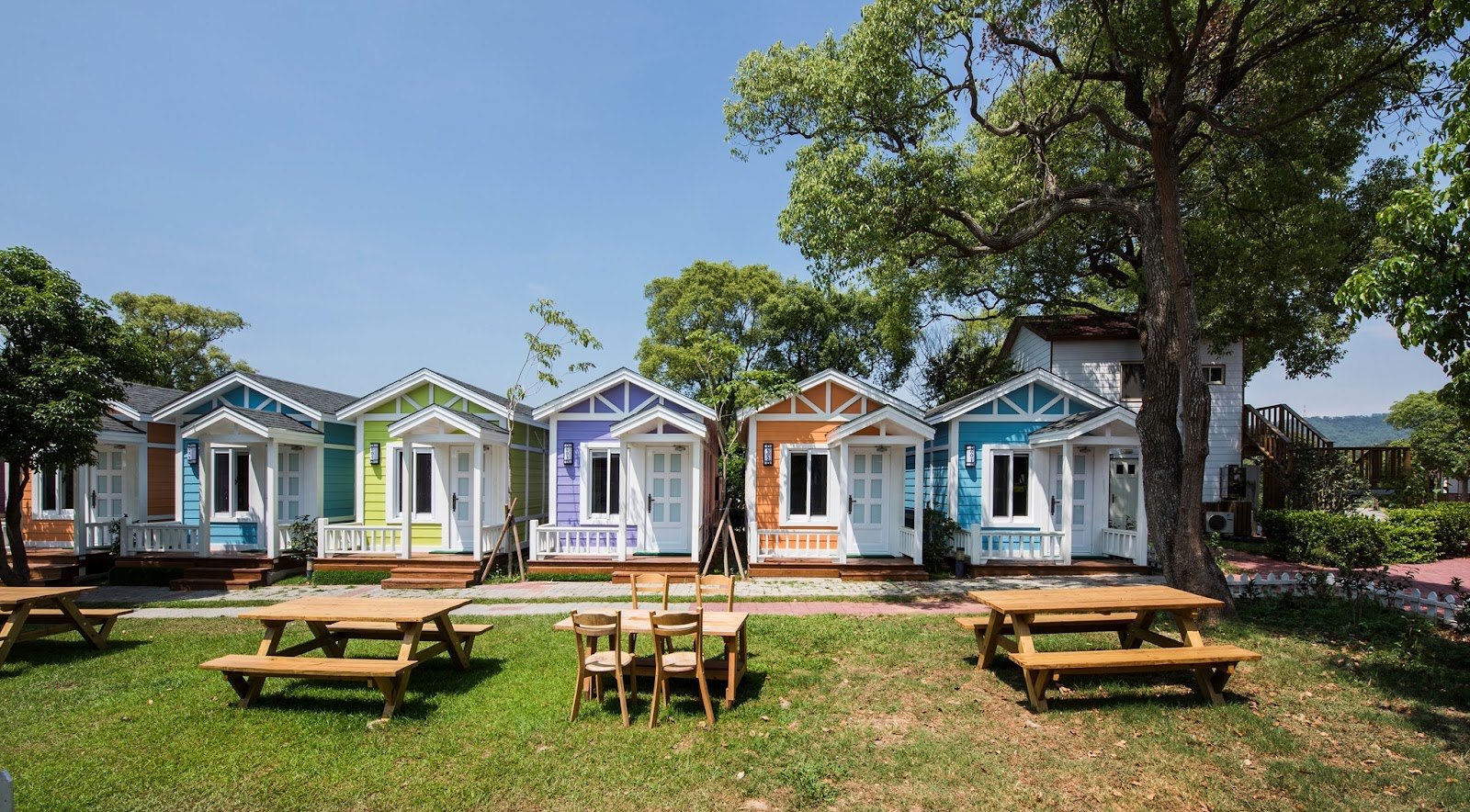 彩色合掌村!超繽紛「異國風小木屋」踏進門更童趣 廣闊大草原上「悠閒露營+超大球池」小孩最愛❤️