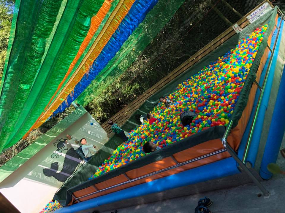 位於苗栗的藍鵲渡假莊園裡有超夢幻的繽紛彩色合掌村,佔地廣大的園區裡還有提供烤肉區的樂活野宴,提供扎營的藍鵲大草原、高爾夫推桿區、球池、戲水池和沙坑等等,小朋友真的可以在這裡玩到累趴!
