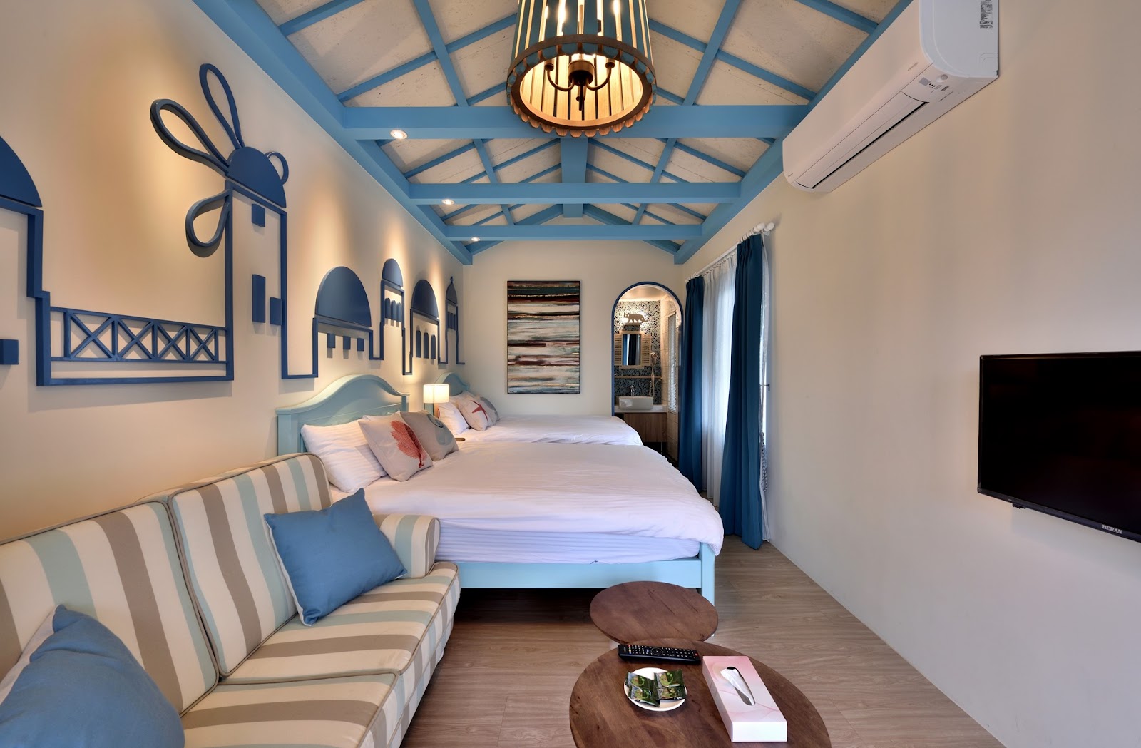 除了合掌小木屋之外,園區裡還有包括西班牙、地中海、新中式、新古典、峇里島、日式、北歐等七種風格不同的房間類型,讓大家不用出國就能體驗到環遊世界的感覺~如果有興致的話也可以選擇露營車試試不同的住宿體驗!