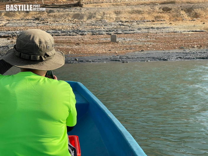 網民日前乘船遊日月潭,發現有清朝墓碑因水退而重見天日。(網上圖片)