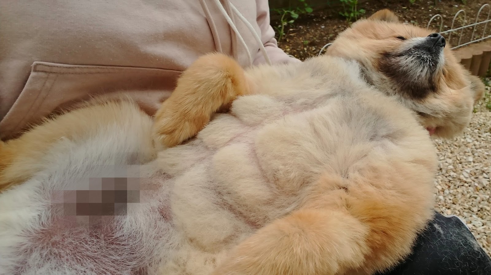 近日推主照常分享Pochi外出散步玩耍的照片,不過網友們卻眼尖發現Pochi似乎哪裡不一樣...原來,當Pochi露出肚肚時竟赫見牠有宛如冰塊盒般的健美腹肌!!