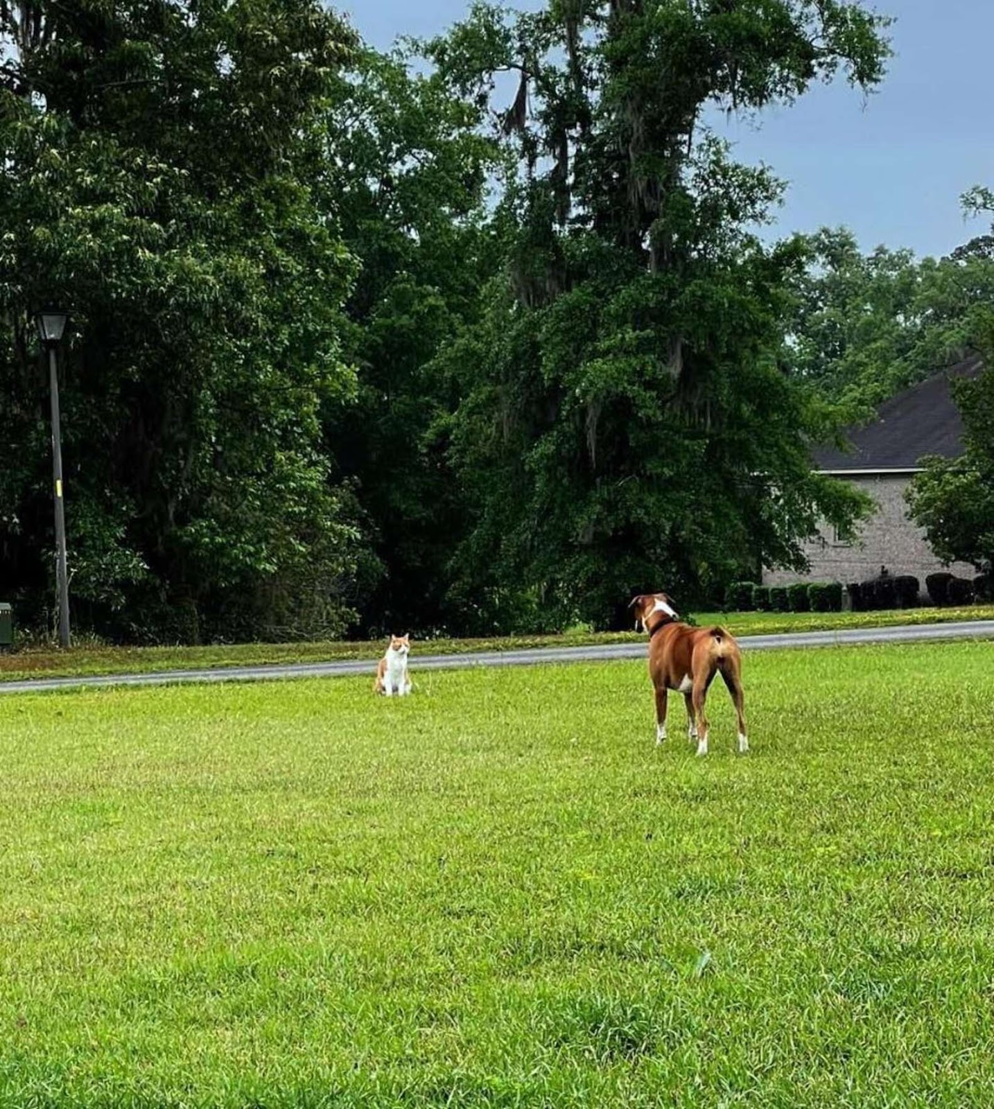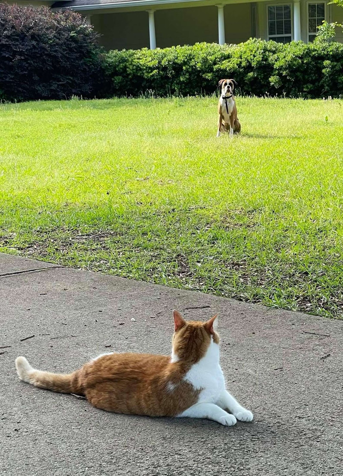 貓貓真的好囂張!發現「隱形圍欄」妙用 坐對面嘲弄狗狗:過來打我呀~