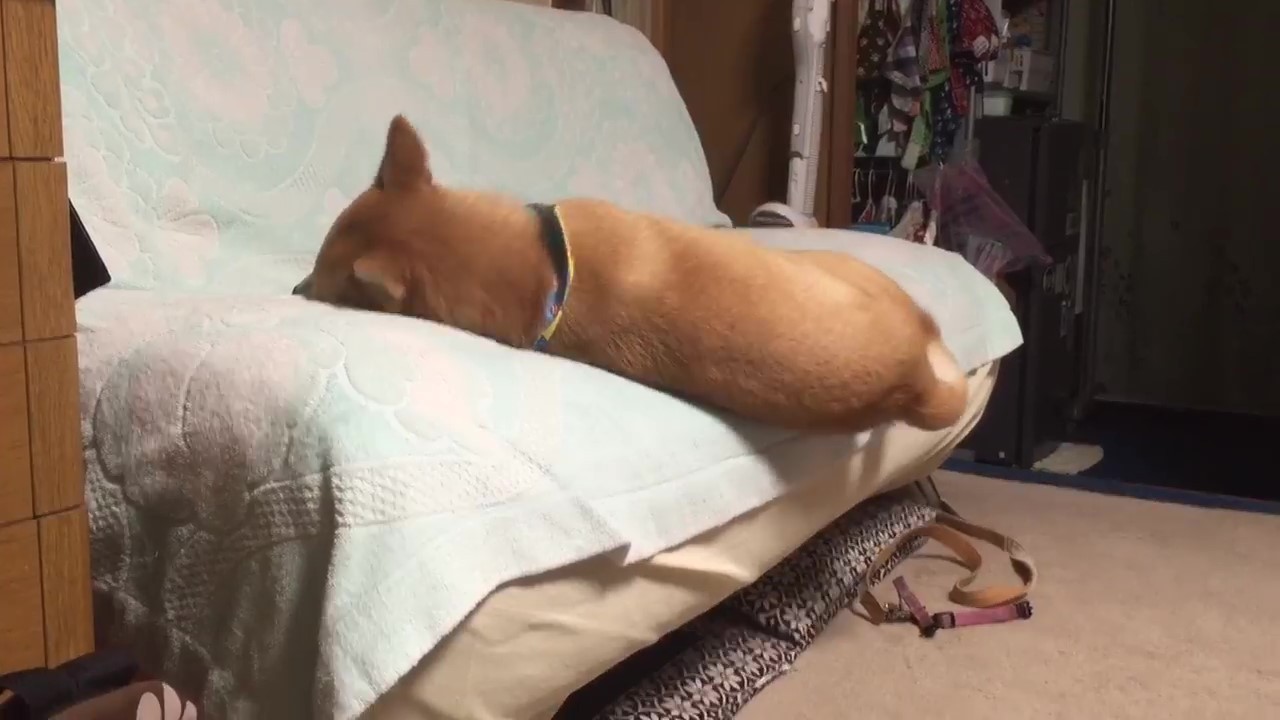 無獨有偶,有另一隻日本柴柴也是睡在沙發邊緣,結果當然也是滑落在地啦,更爆笑的是,這柴滑到地上後不出幾秒又瞬間睡著了,讓飼主也不禁傻眼笑噴:「柴犬強大的睡眠能力,就算這樣也照睡不誤。」