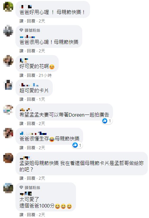 卡片的精美可愛程度讓粉絲們大讚許孟哲不僅有巧手也超級有巧思,紛紛留言說到「自己小孩的卡片,心都溶化了」、「母親節快樂,爸爸很用心,媽媽很開心」、「收到這樣的卡片,馬麻一定很幸福」、「萌哲以前美術都拿滿分吧」,而除了在母親節這天表現良好,其實趙孟姿曾在採訪中透露,成為新手爸媽10個月以來,老公真的完全變了個人...。