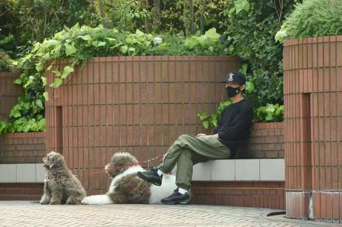 ▼那是4月中旬、工藤靜香51歲生日的兩天前,木村拓哉牽著巨型貴賓犬,工藤靜香則牽著一隻小狗。