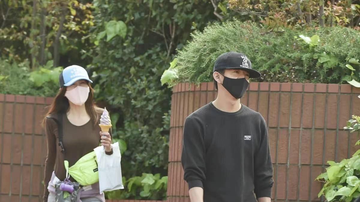 ▼兩人有說有笑,一邊走一邊吃冰淇淋。雖然他們戴著口罩,但彎彎的笑眼還是能夠看出好心情。