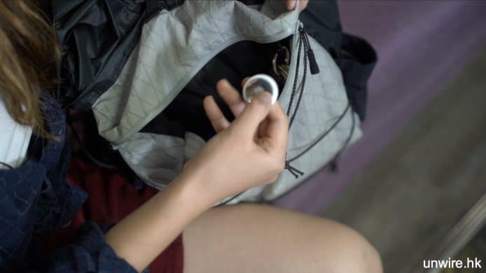 ▲各把一個AirTag放入兩名記者的袋內,測試 Apple 反跟蹤功能是否有效