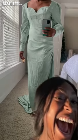美國女子Natalie Tyson日前在TikTok平台上拍片分享姊姊友人網購中伏的經歷,她指該朋友早前在網店購買了一件淺綠色緞面洋裝,花了32.39美元(約252港元),雖然不算太貴,但認為質量應該也不至於太差。從買家提供的展示圖可見到,洋裝採用開高衩和腰部抓皺設計,模特穿起來身材玲瓏有致,十分吸引人購買。