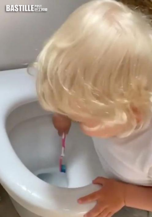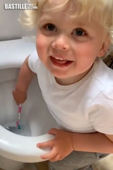 英兩歲仔勤力幫手「做家務」 用媽媽牙刷清洗馬桶