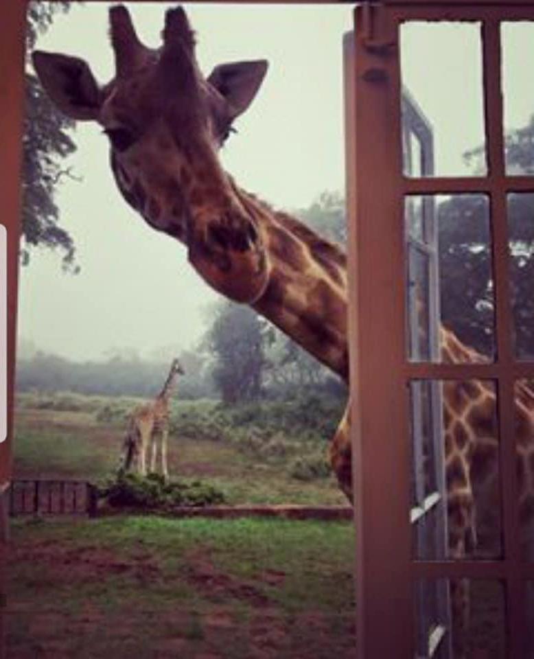 ▼長頸鹿探頭進來看:「你們做飯了嗎?」