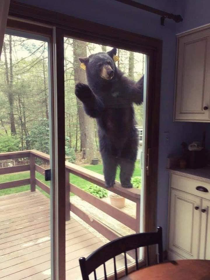 ▼有網友在臉書上分享了一系列非常有趣的照片,照片中有各種各樣的動物,牠們站在人類居所的門廊上、趴在窗檯上,專注地看向房間內,就像來拜訪人類的老友。