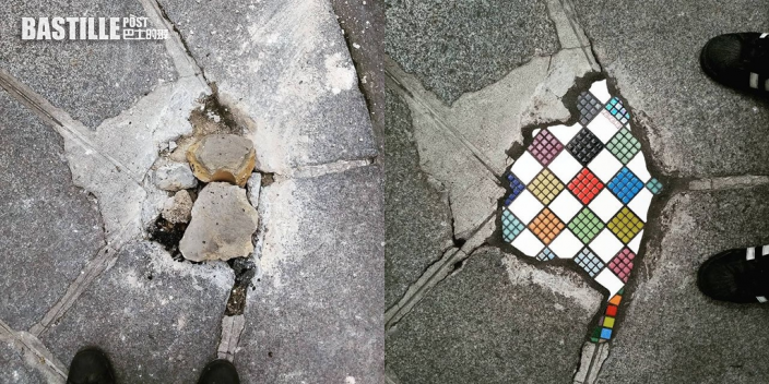 法國藝術家修補路面坑洞巧變藝術作品 殘舊馬路重現生機