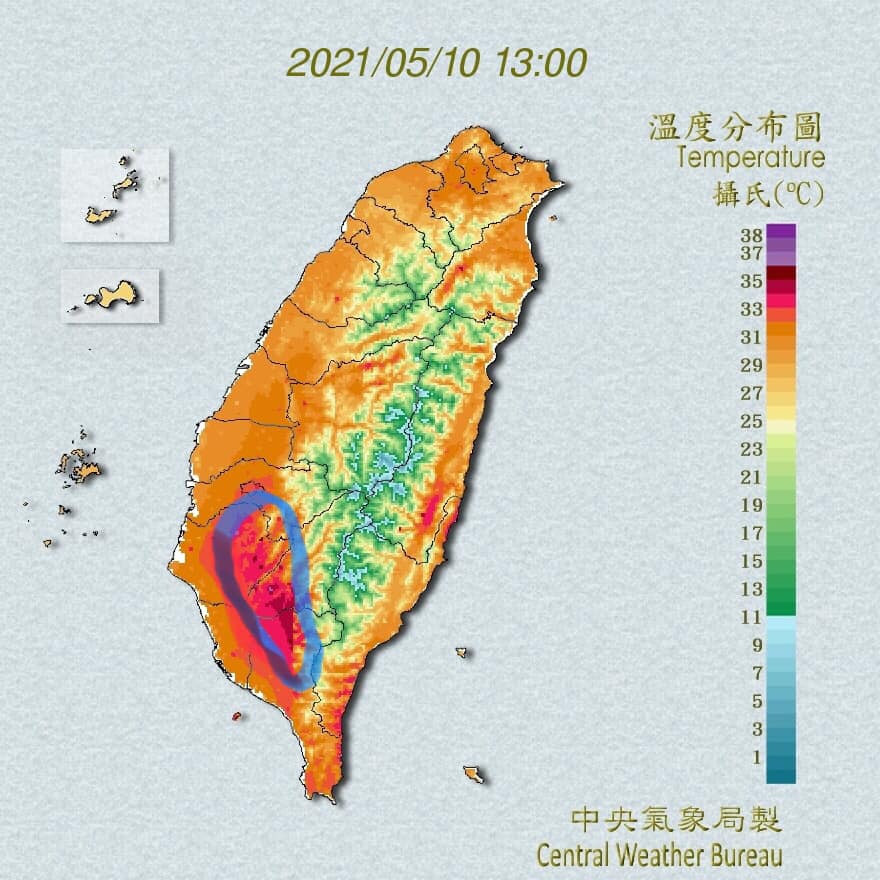 ▼彭啟明表示,近日開始熱起來,高雄、台南的高溫達到33至37度,中南部以北中午的高溫也都超過30度,中部以北及東半部多數地方則接近或略超過30度。未來7至10天都是類似穩定的天氣,要等到5月底西南季風水氣抵達後,環境才會稍稍改變,會有一些午後對流雷陣雨。