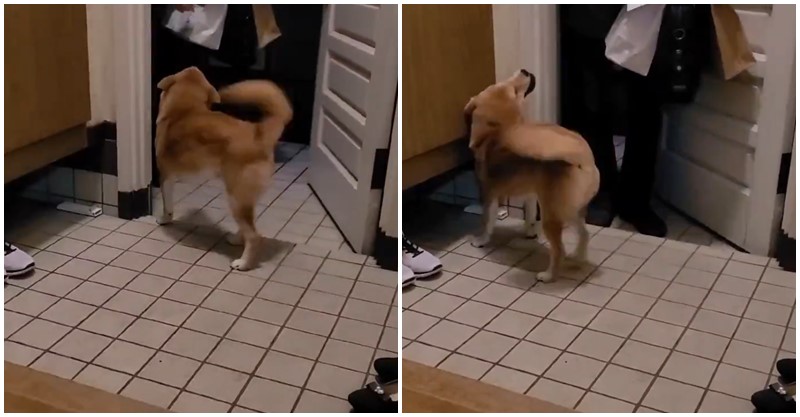 下班回家時看到毛孩熱情迎接的模樣,真的會覺得一整天的疲累瞬間消失!日本一位飼主養了一隻名叫Mugi的柴犬,這天可愛的Mugi乖乖坐在門口等把拔下班,還不忘開心地搖著尾巴,而當把拔終於進門的那一瞬間,Mugi的反應真的是太讓人融化了~