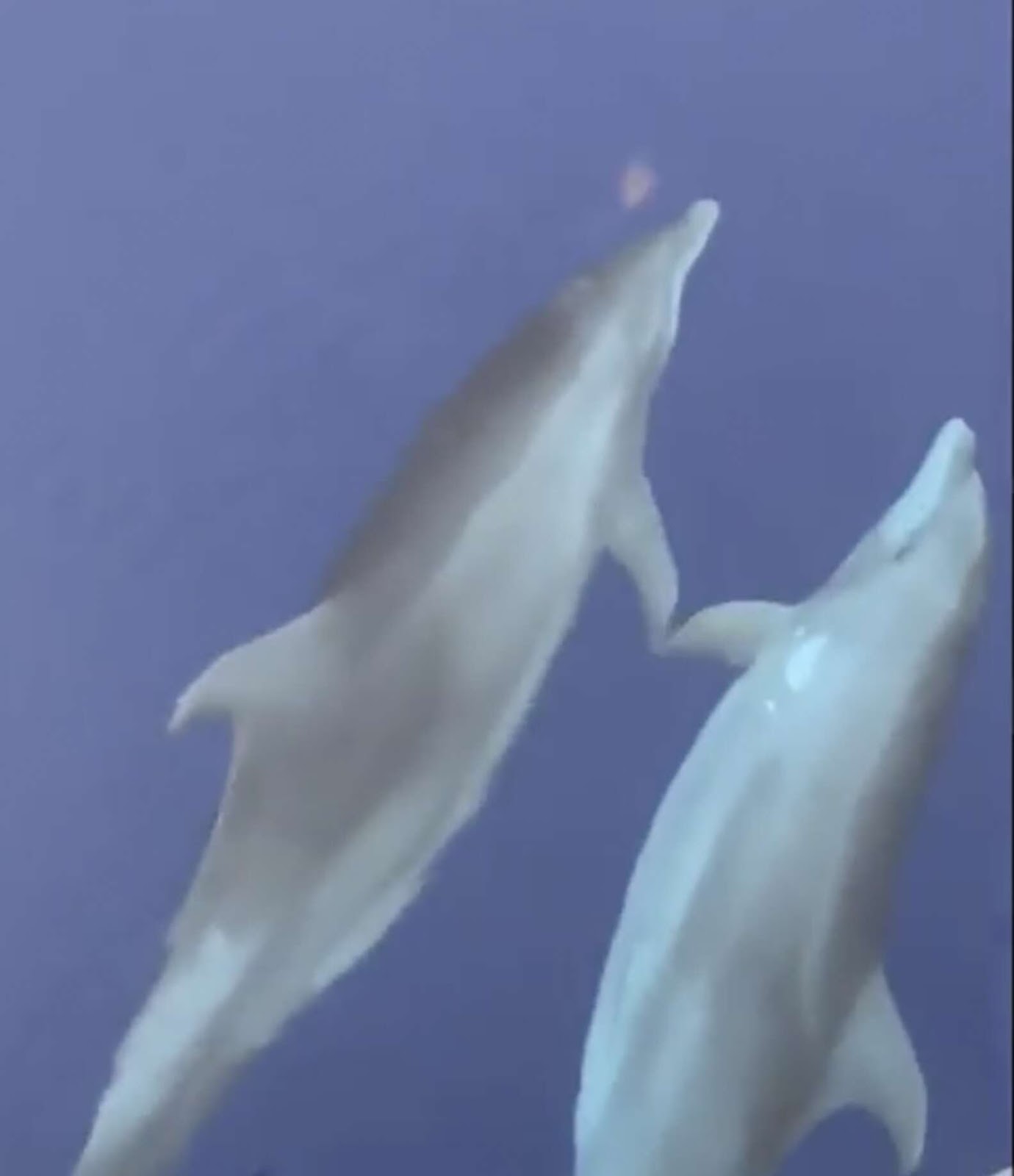 在同事們結束調查準備離開時,居然有5隻海豚沿路跟著他們的船,艾瑞卡還注意到其中兩隻海豚在游泳時,會一直將牠們的胸鰭貼在一起,看起來就像是手牽手一樣,讓船上所有人都感到非常驚奇,而艾瑞卡也馬上將這個有趣的畫面用手機拍了下來,並分享到網路上!
