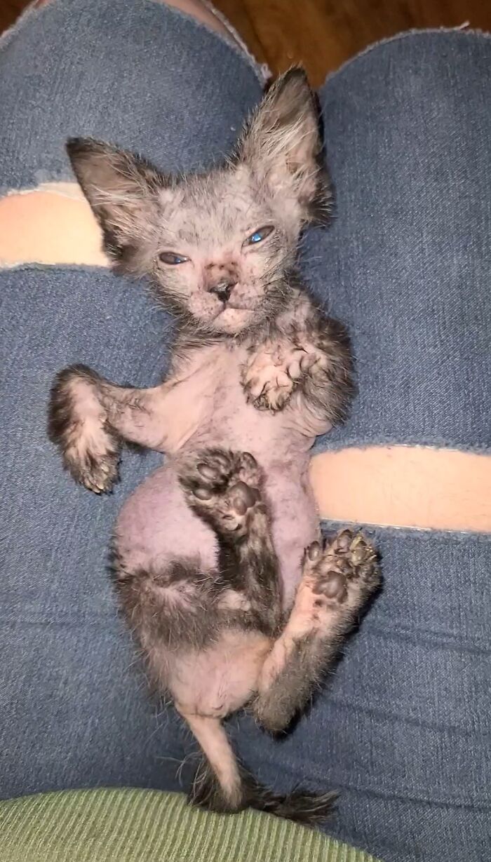 @graciewolfcat Gracie at 4 months old!##fyp##wolfcat##lykoi##catsoftiktok