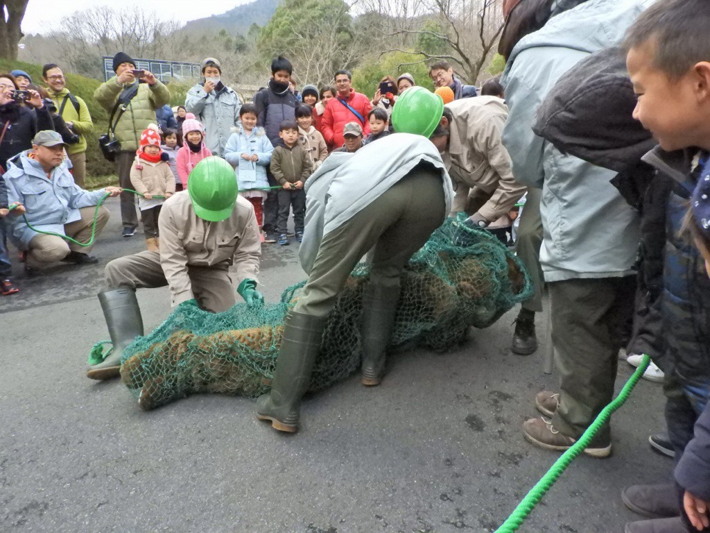 ▼動物園處理逃脫動物的方法都差不多,先用網、再放暈,最後送回籠子裡。